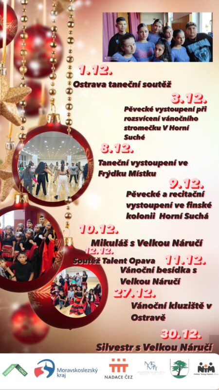 12.12.2023. Talentová soutěž v Opavě,, Ukaž, co umíš,, Děti za vystoupení získali 1.Místo. Naše děti měli tři vystoupení jako první zahráli Popletenou pohádku. O Králi co ho věčně bolela hlava, o princeznách které se chtěly vdávat a o třech oříškách které splnili přání princeznám. Druhé vystoupení bylo taneční z názvem Billie Jean. A třetí vystoupení opět taneční tradiční romský tanec.
