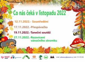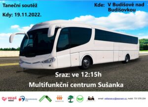 19.11.2022. Připomínám!! 19.11.2022. Jedeme na taneční soutěž do Budišova nad Budišovkou. Autobus bude přistaven v 12:15h u Sušanky. Předpokládaný návrat 21:00 -Vystupující tanečníci si sebou vezmou : šátky, teplákovky. -Všichni ať nezapomenou si vzít zelené trička!! -Tamarka nezapomene si vzít hudební podklad. -Kapesné dle možnosti -malé občerstvení máme pro všechny. -Holky vlasy zapletené do copů.