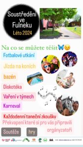 Taneční a divadelní soustředění ve Fulneku. I letos jsme pořádáme letní soustředění a to tradičně ve Fulneku kde to dětí mají rádi. Tento krát to